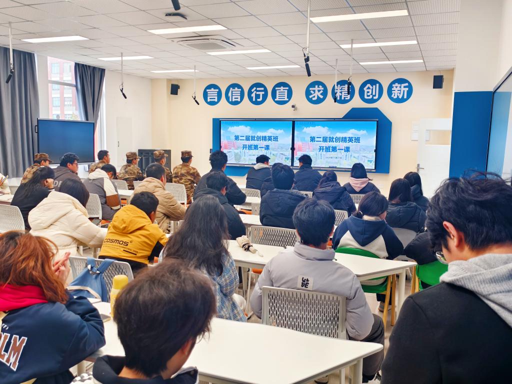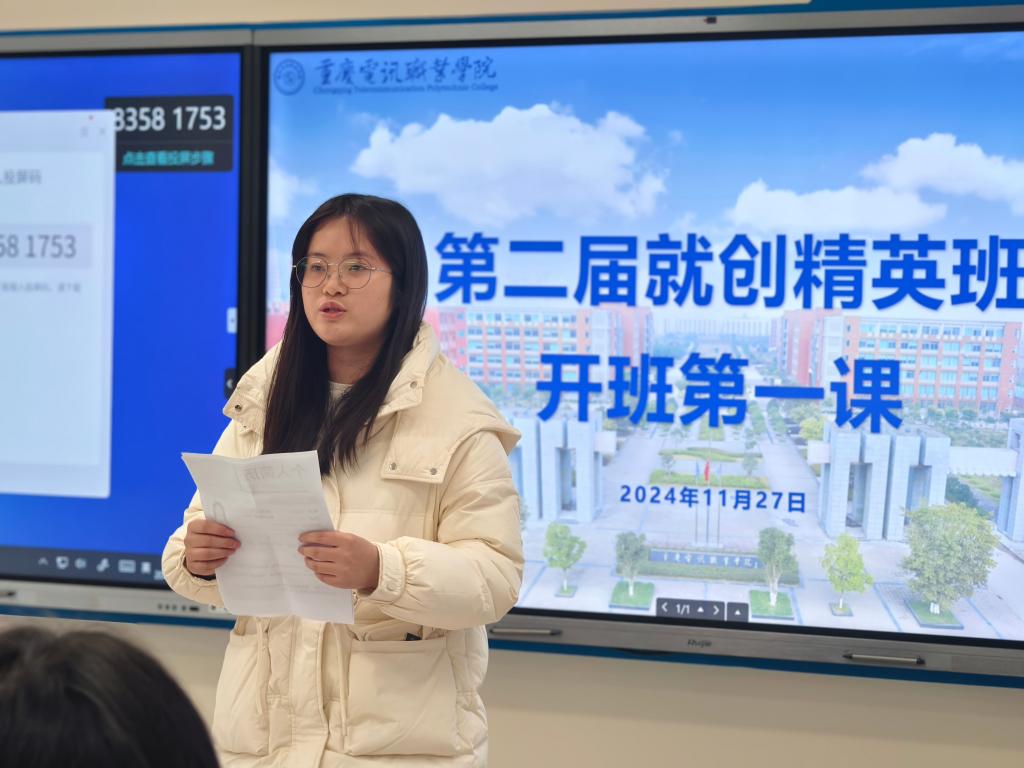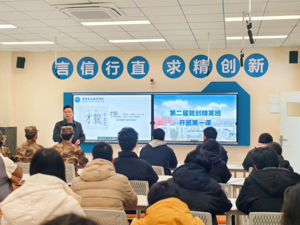 11月27日,重庆电讯职业学院第二届“就创业精英班”开班第一课在格物楼215教室顺利落幕。学生处副处长徐高勇主讲,近50名精英学员及学生处相关负责人出席。