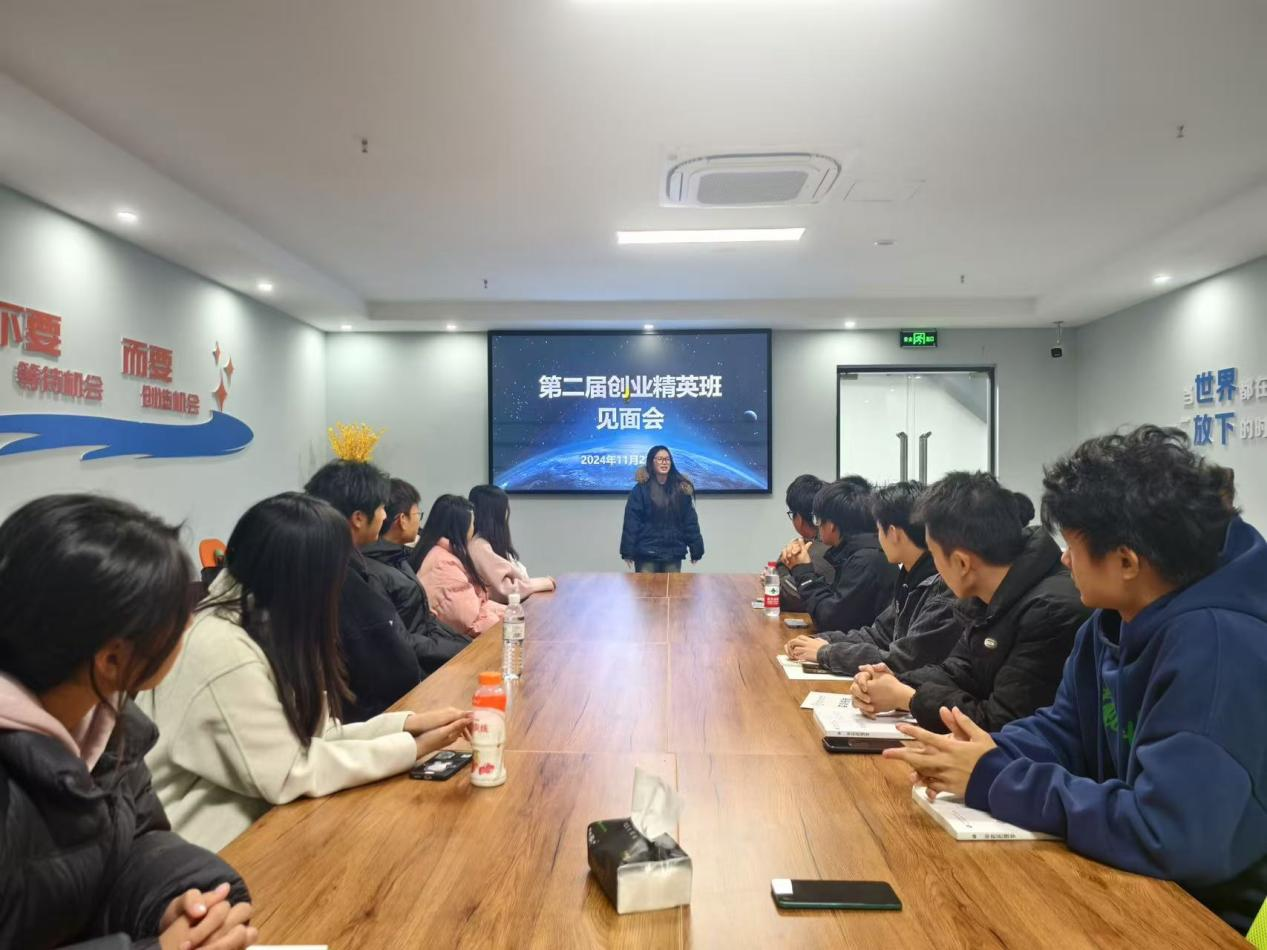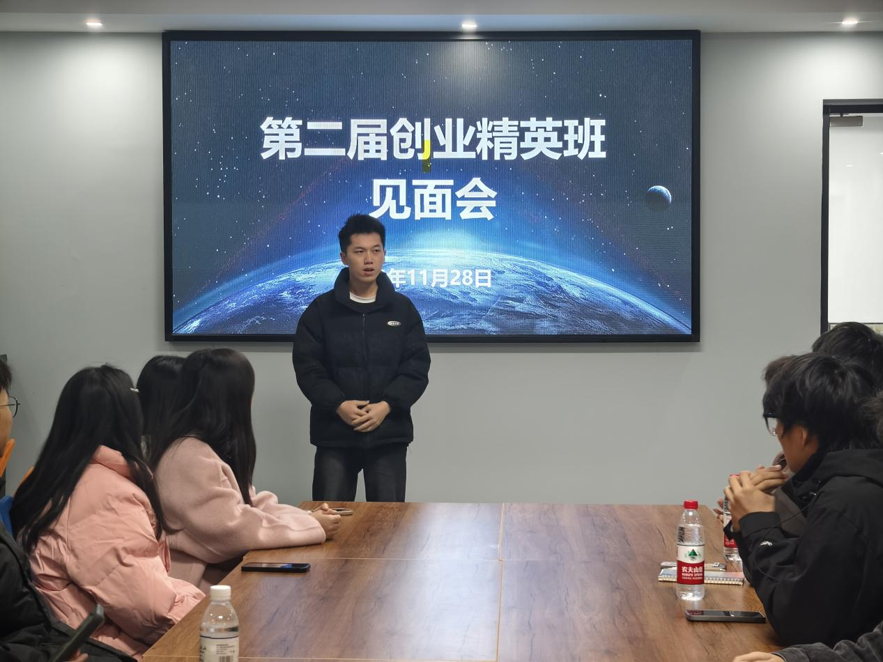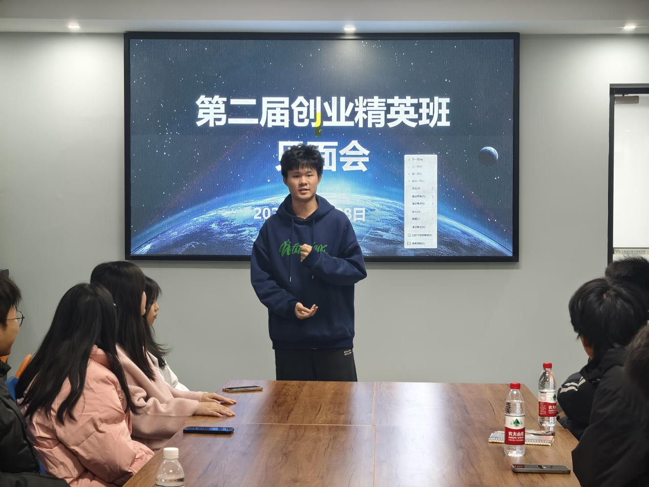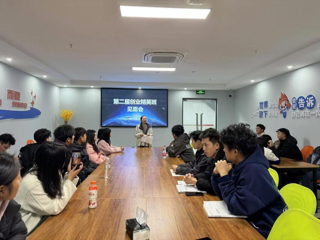 在会上,由创业班班长陈渝珊向同学们进行了自我介绍,随后同学们相继进行自我介绍,互动交流,大家共同探讨了创新创业的方向。在这里,学生们都能够保持良好的学习氛围、积极参与和分享自己的经验,从而不断提升。